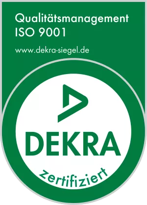 Wir arbeiten mit einem von der DEKRA zertifizierten Qualitätsmanagementsystem nach ISO 9001-2015.